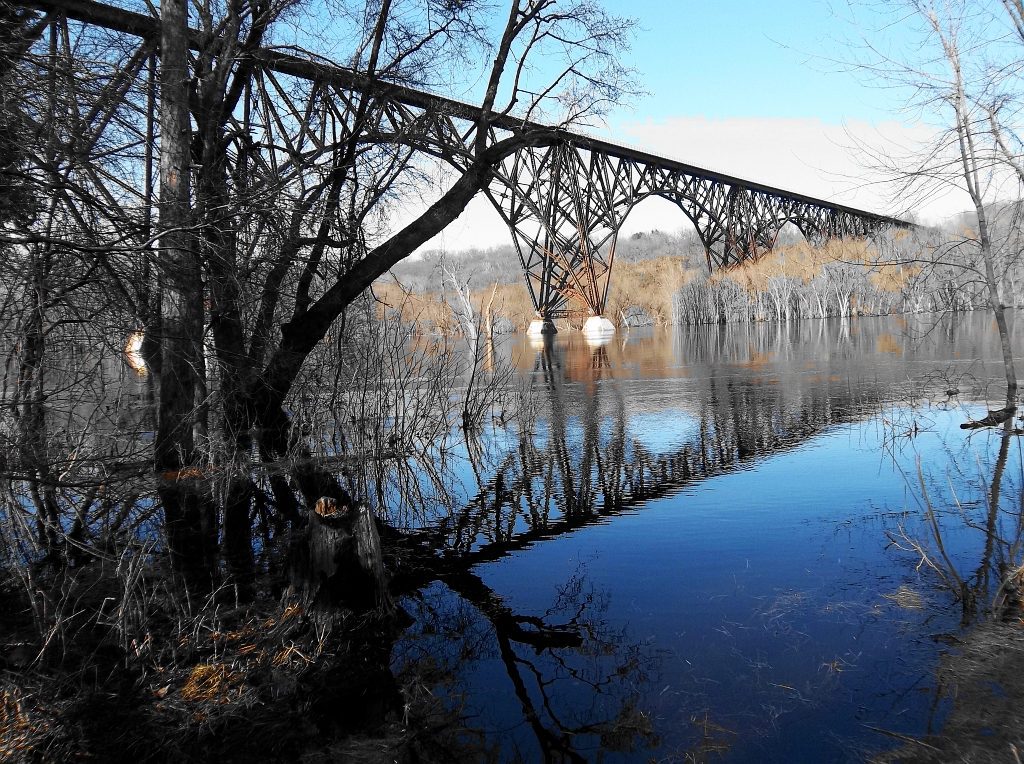 History: I have been here once on a magical day that I may not forget in a long time. That's another story, and a lost love, but the bridge is quite the spectacle in itself. Looking out upon its span, it conjures up many things, and after hearing some of the local legend it makes the mind wander a little more. I know a few people who spent many nights here during their youth and they saw nothing. Others in the Sommerset area say something completely different and believe in its haunts. There is so much that fascinates me about this bridge which has brought out my pen and a story has been started. I plan on going back this summer (2014) to get more pics and sit down and write underneath her steel comfort. Her specs are here. Her haunts are located here.