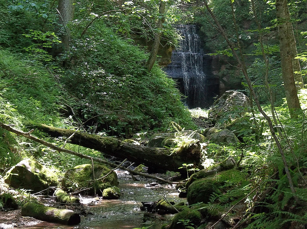 History: A small stream that has carved its way over the years into a rather tall waterfall for the amount of water that pours over its lip. A nice scenic hike to the falls will give plenty of photo opprotunities and maybe a soiled shoe or two so come prepared. High bluffs surround this little spectacle and if you like small crowds this is a definite pleasure! The paths are less traveled and make sure you look out for some Arisaema Triphyllum, or better known as Jack in the Pulpit. The bright orange berries that lie under the pulpit in the fall are spectacular!