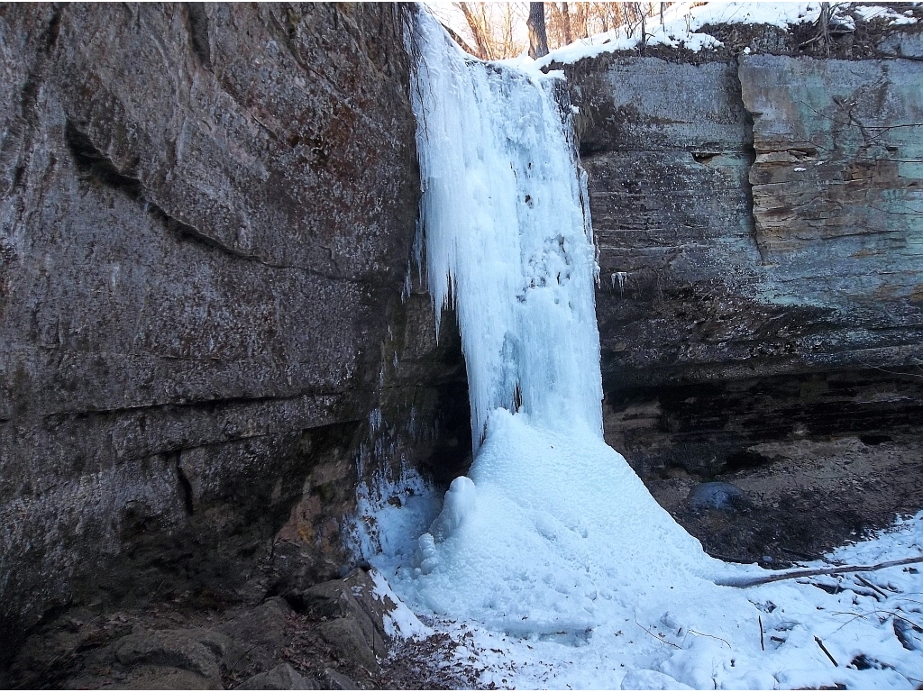 Location: Near Crabtrees and Garden Gate Country Store off Hwy 95 north of Marine on St. Croix or south of Scandia. Take the exit to the store and go North on Quinnell Avenue North. Take a right on 205th and park. Waterfall is on the right. This is private property and a very seldom seen waterfall on the St. Croix.