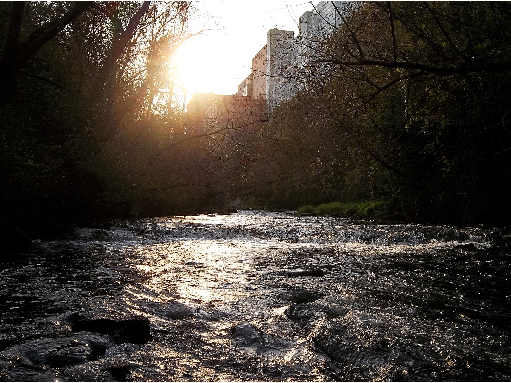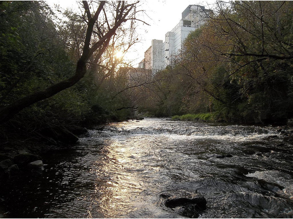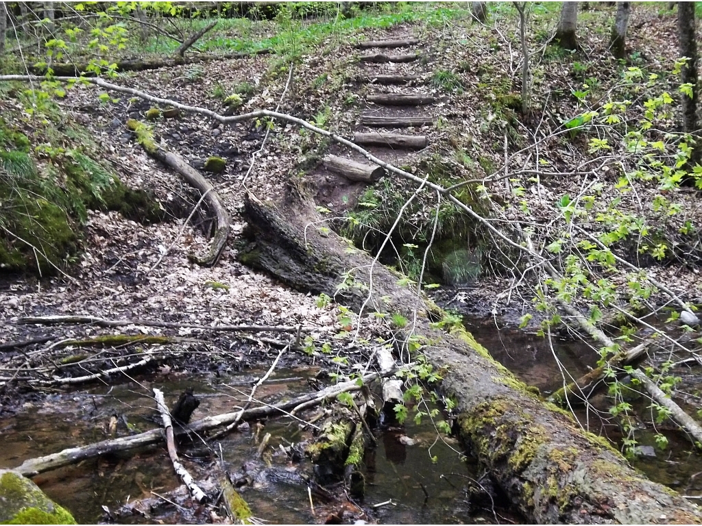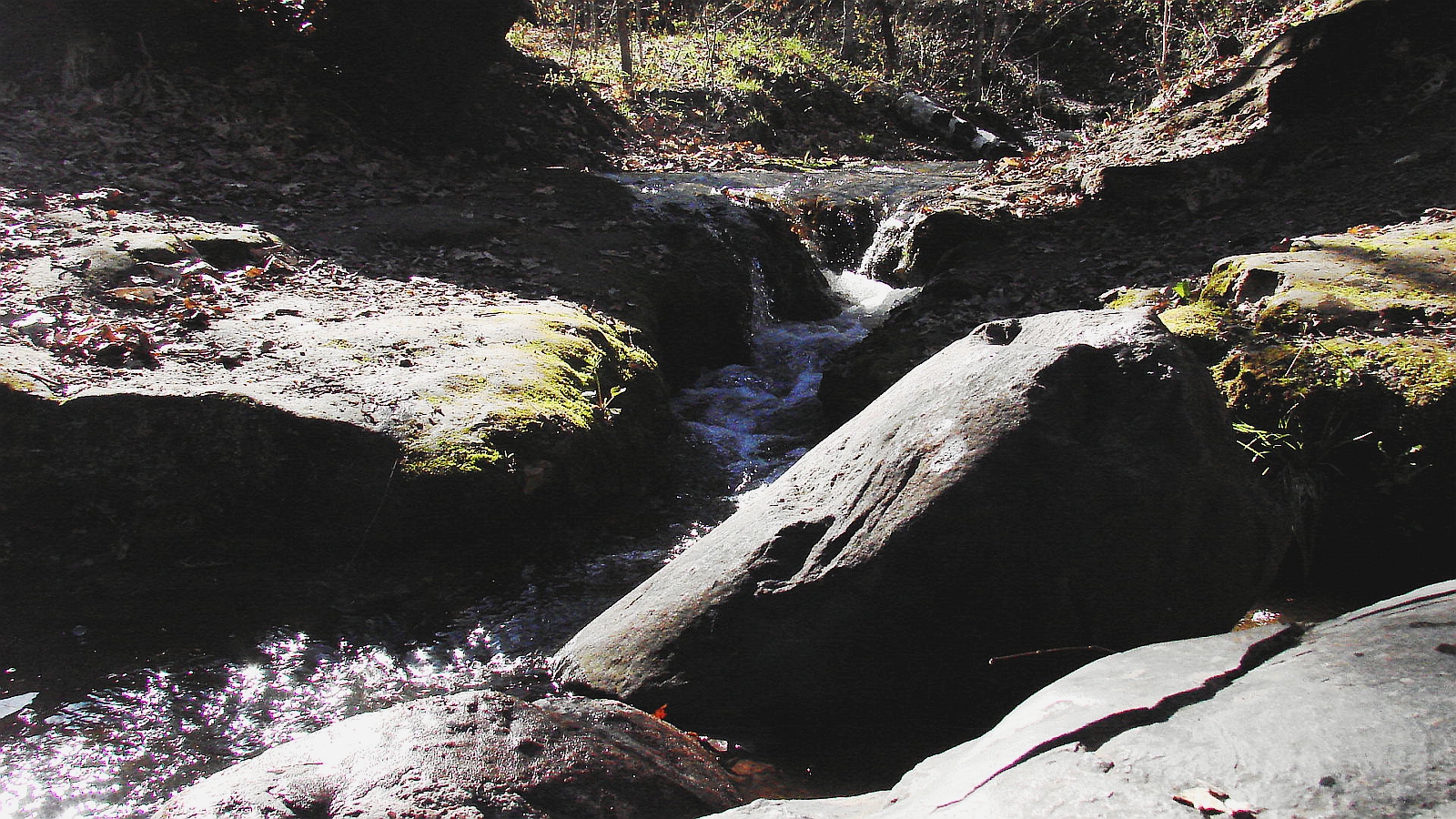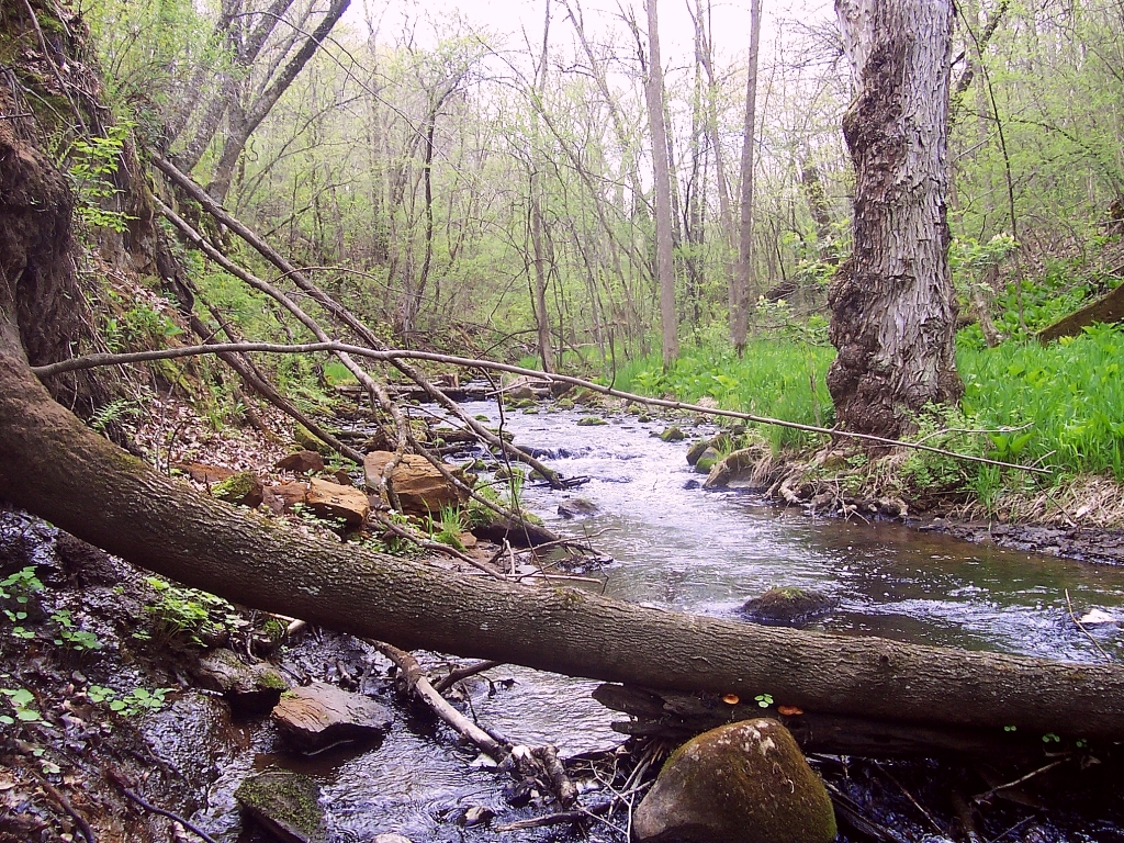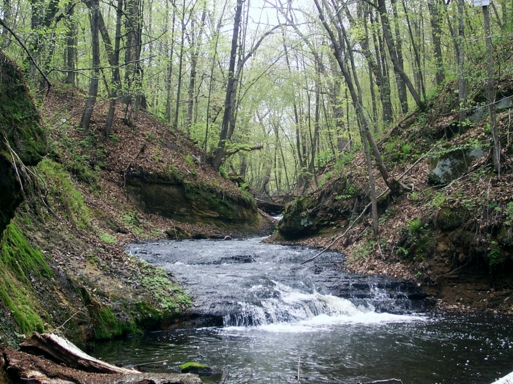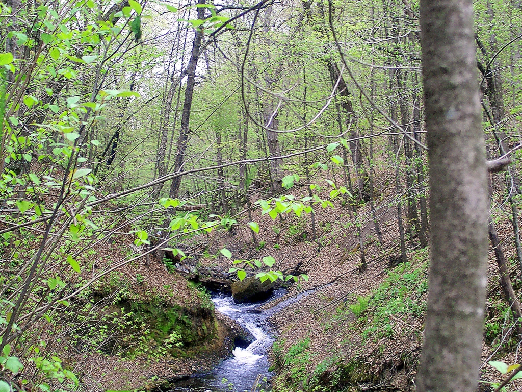History: I live not far from here and have wandered this area countless times. There are tons of wildflowers including a field of Jack in the Pulpits which are farther down the creek area. The Stone bridge is to your immediate left under the bridge along with the usual graffiti art under most bridges. This is a fast moving current on such a small creek which may explain how it has carved such a deep crevice over thousands of years. At one point you may be looking down 150 feet or more and the creek is looking mighty obscure. A few tunnels are located under the previous railroad tracks that are no longer present (this will be turned into a bike trail soon and as of spring 2014 it is still gravel). I have encountered a number of fly fisherman who swear there is a good trout population here. There are some nice water features here as well and some are impossible to get to without some hip waders (thus I have no pictures of these). Fun area to explore. VERY steep climbs!