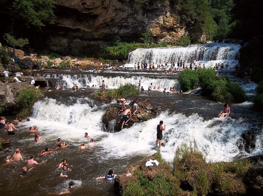 Location: Going east on 94 from Minnesota into Hudson Wisconsin, take exit 4 and head north. Follow the signs. After you get settled in and pay, exit the park again and head north to the first arking lot on the left if there is parking available (most times this lot is full but it doesn't hurt to check real quick). From this parking lot you can get to the waterfall the quickest and save about three miles of walking!